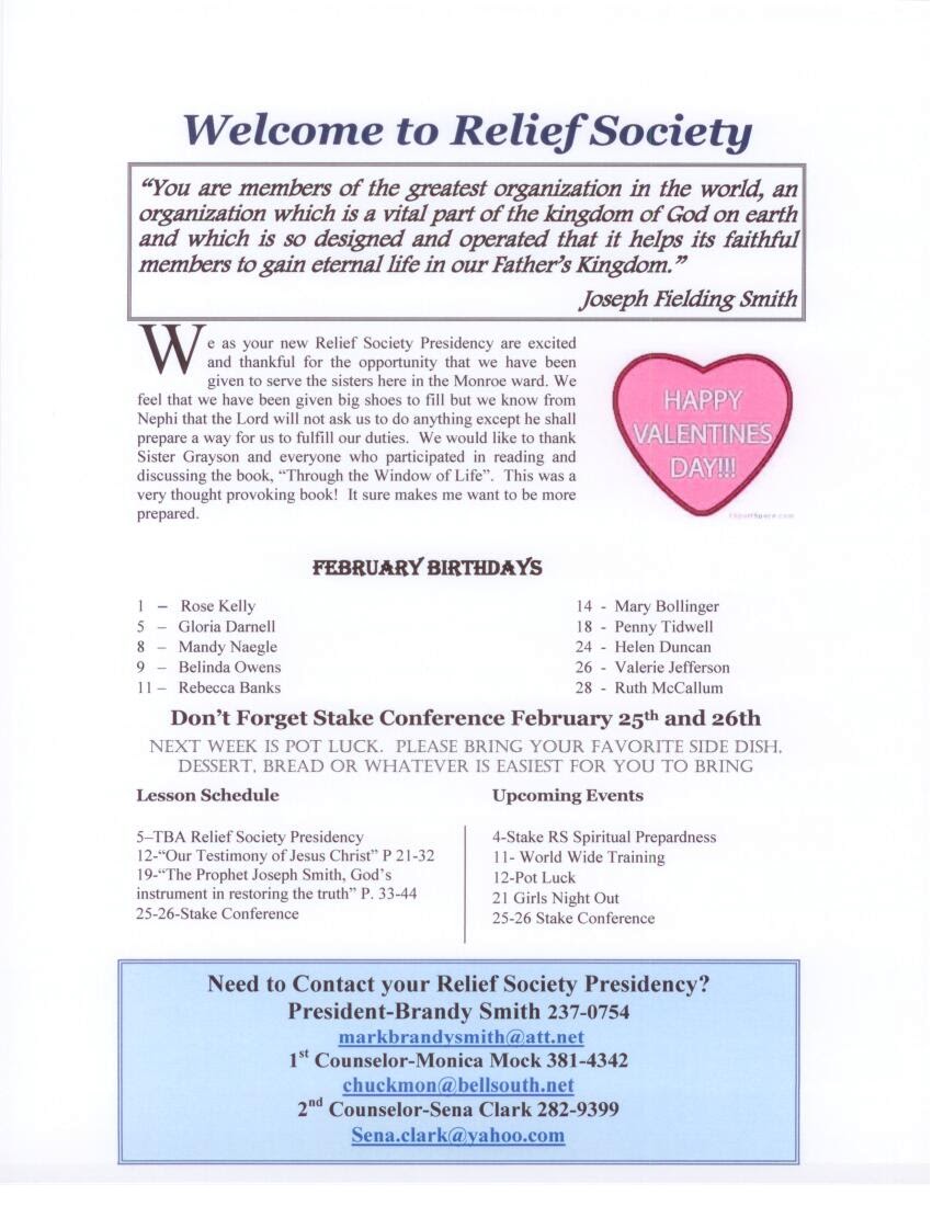 Monroe Sisters: February 2012 Relief Society Newsletter