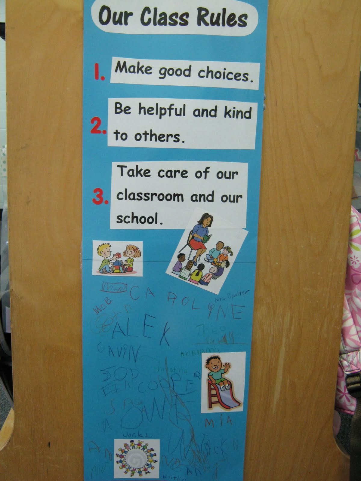 Our Class Rules poster that any Kindergarten student, pre